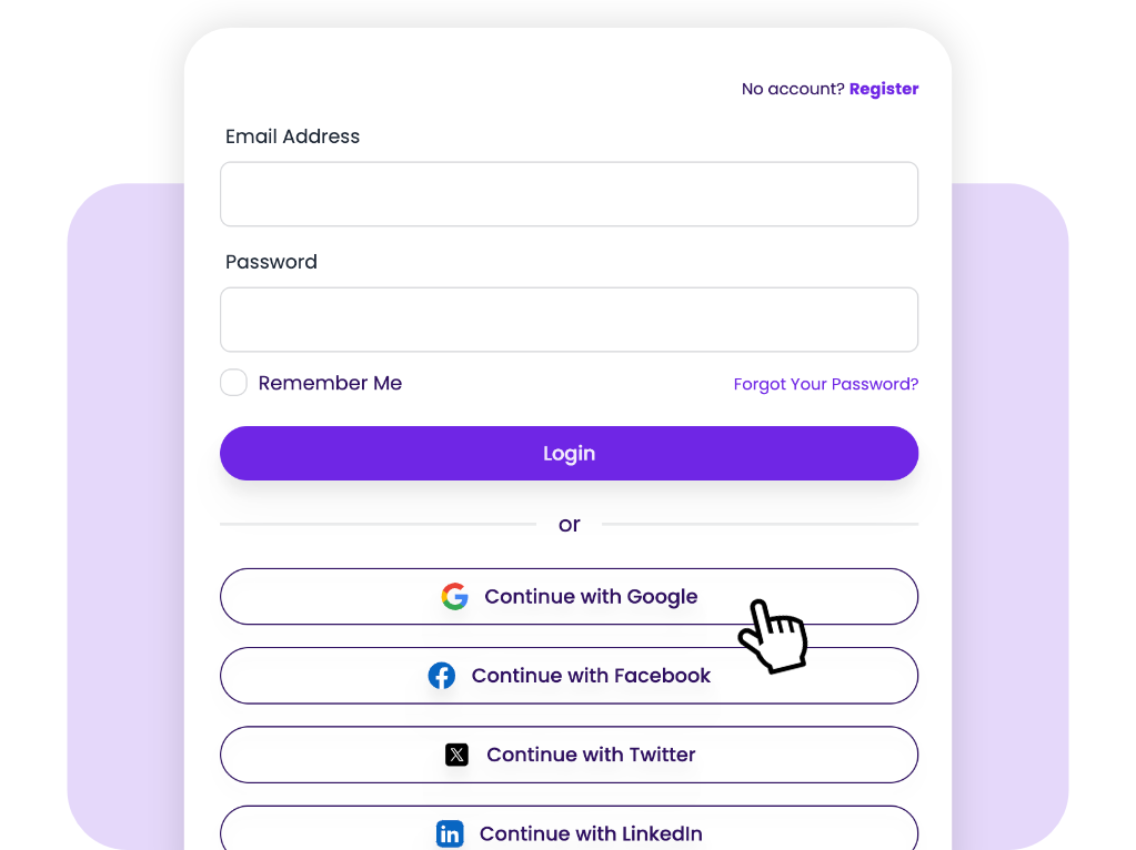 Kalendoo supporte l'authentification traditionnelle email/mot de passe, les connexions sociales (Google, Facebook, etc.) et l'intégration avec vos systèmes intranet existants comme Keycloak, LDAP, Active Directory et autres systèmes SSO.